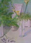1996Boeket met blauwe distel, met pastel over aquarel.